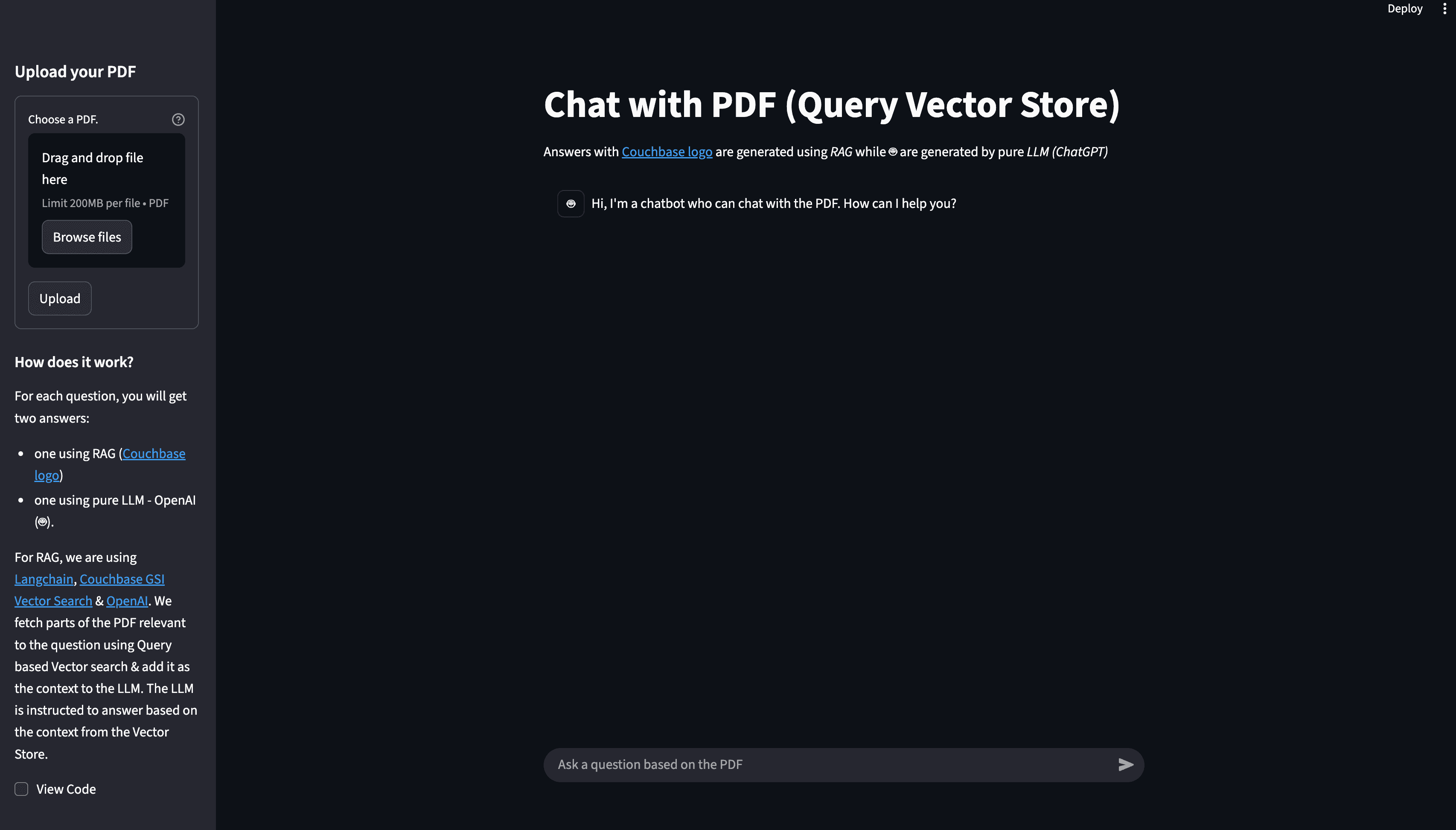 pdf-chat. We will use the _default scope and _default collection of this bucket.While the application works without creating indexes manually, you can optionally create a vector index for better performance after uploading PDFs.